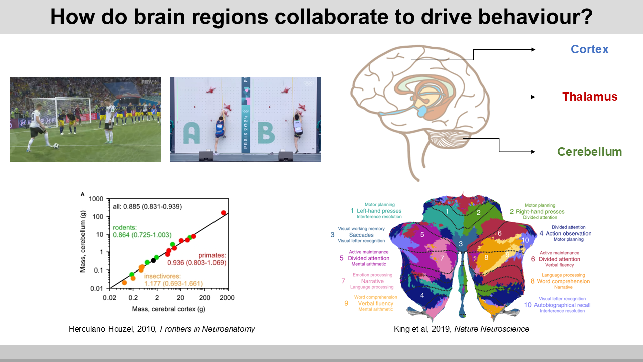 They will investigate how cerebellar output influences dynamics in the basal ganglia and motor cortex during behaviour.