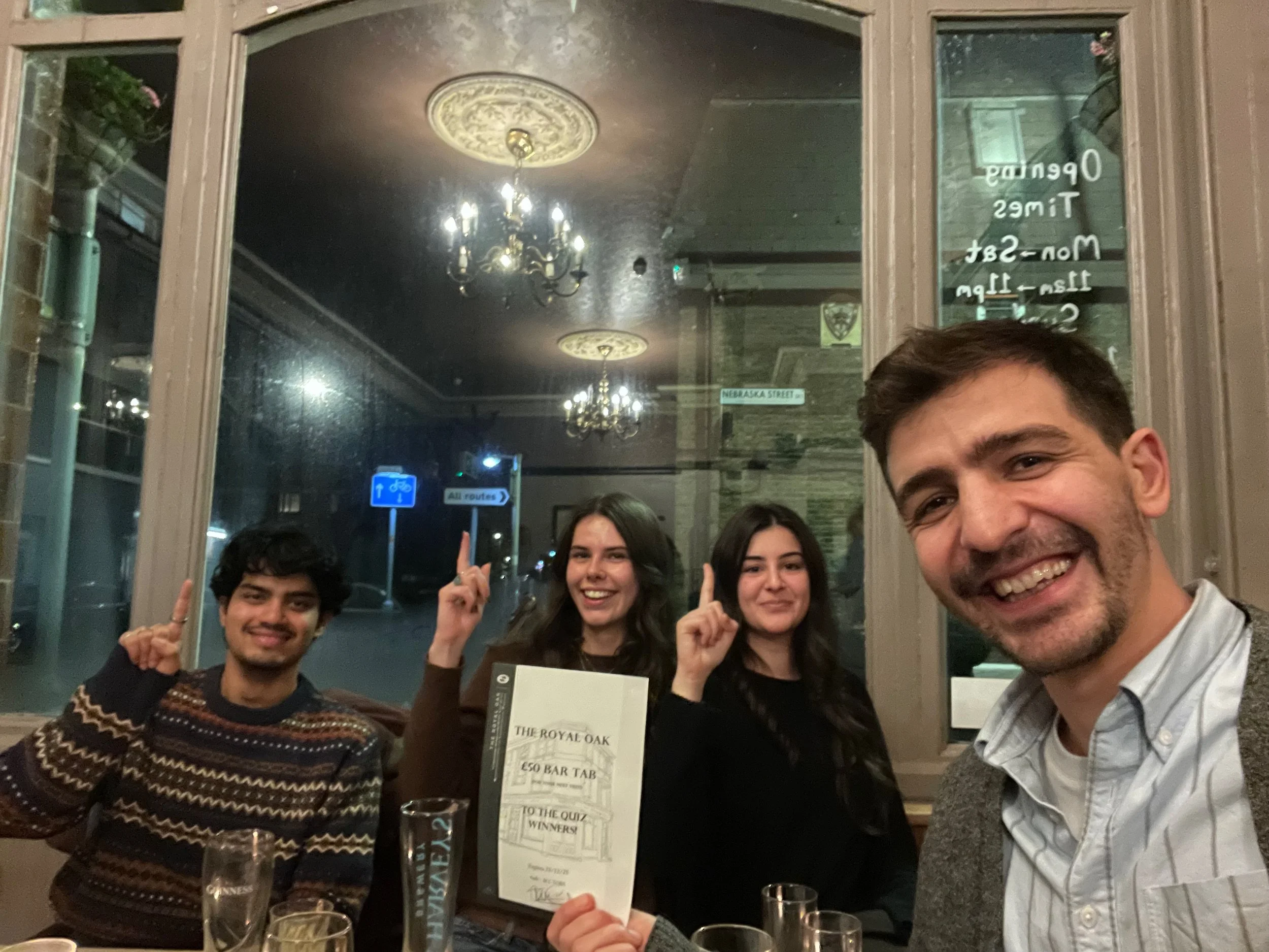 Evidence of the win! (Not pictured: Carolina, Cristiana, and Cristiana’s partner Luke, who made a crucial ID of the Enigma Machine for the picture round)